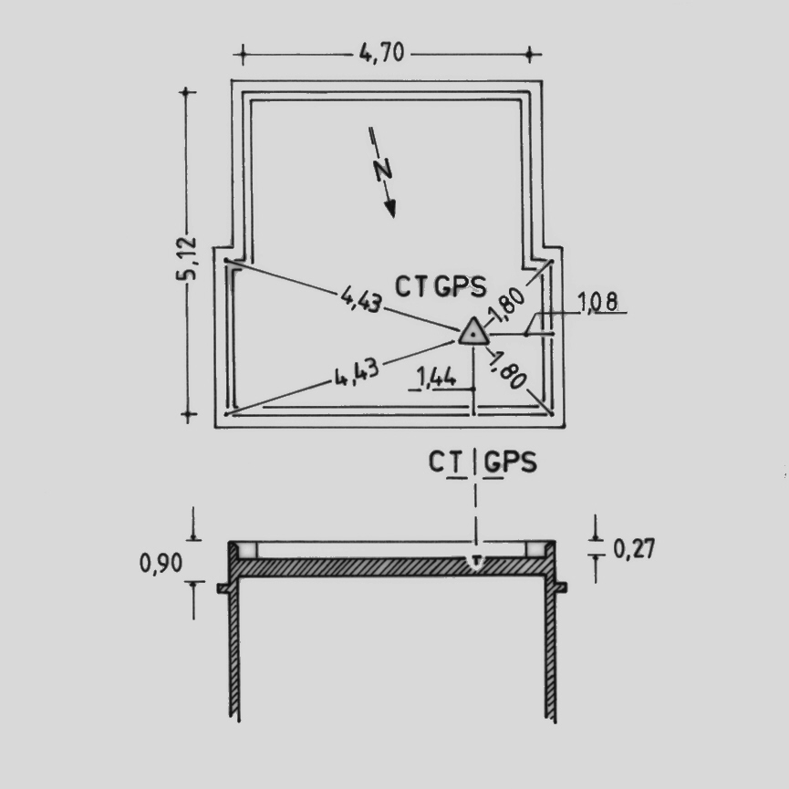 Centrino del tipo "GPS A" fissato sulla guaina centrale, che impermeabilizza il terrazzino sovrastante la stazione di rifornimento carburanti IP, posta in località La Pilara, al Km 33,300 della SS. 7 Appia.