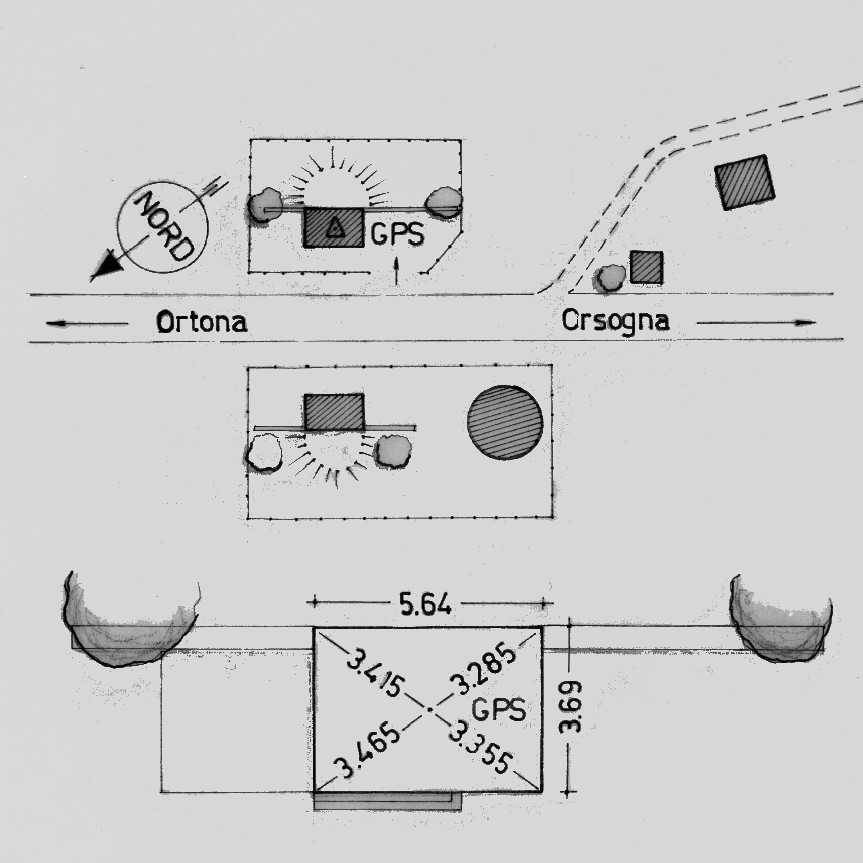 | materializzazione | Centrino del tipo "GPS B" fissato in corrispondenza del centro geometrico della soletta in calcestruzzo a copertura del serbatoio dell'acquedotto di Poggiofiorito – Arielli posto in località Valle Cicchitti. |