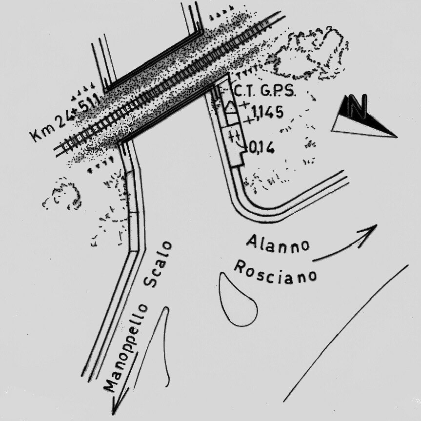 Centrino di tipo "GPS C" fissato sulla spalla nord in calcestruzzo armato del sotto passaggio ferroviario sito al km 24+511 della linea ferroviaria Pescara – Sulmona.