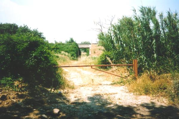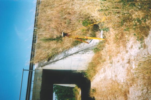 Centrino del tipo "GPS C" infisso alla base della spalla sud-est in cemento del sottopassaggio alla S.S. 5 di una strada vicinale.