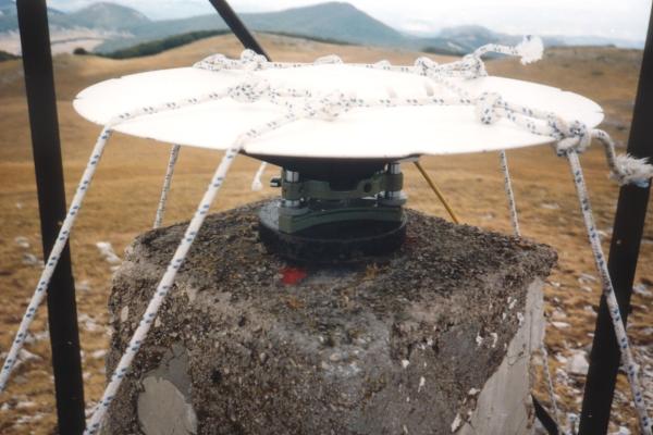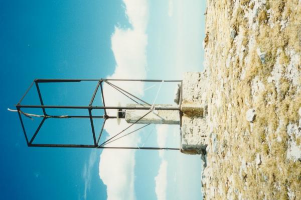 | materializzazione | Centrino di tipo "GPS A" fissato su preesistente centrino IGM del tipo di superficie, coassiale a sottostante centrino di fondo, cementato su un pilastrino eretto su un basamento, entrambi a pianta quadrata ed in calcestruzzo, alla sommità del monte. |