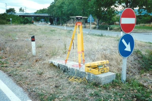 | materializzazione | Centrino del tipo "GPS C" fissato in corrispondenza dell'asse geometrico del cordolo in calcestruzzo a protezione del tombino stradale eretto nell'area pressochè centrale dello svincolo per Navelli. |