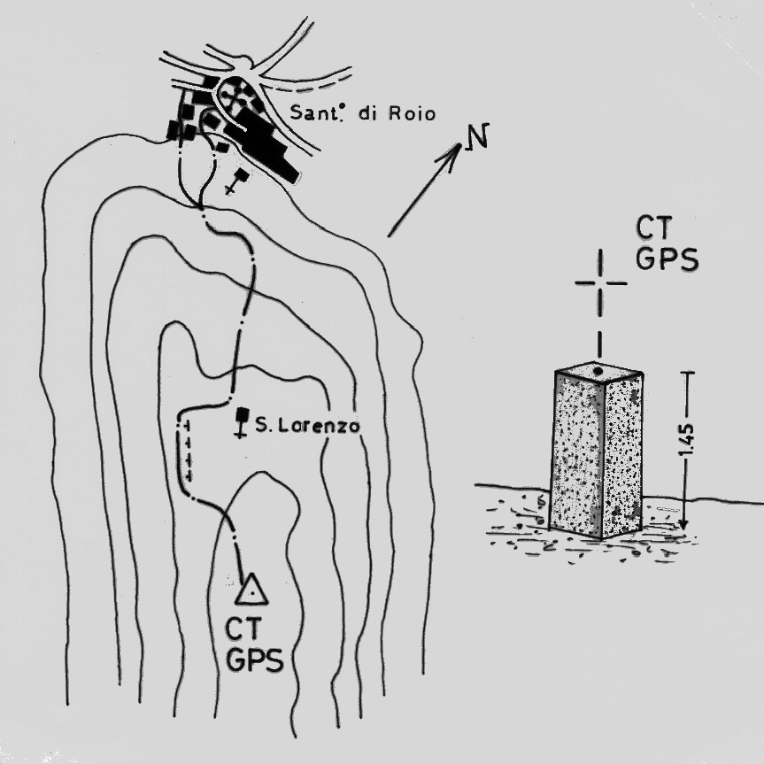 | materializzazione | Cilindretto metallico cavo in asse a pilastrino in cemento alla sommità del colle a sud-est della Cappella di S. Lorenzo e di Poggio di Roio. |
