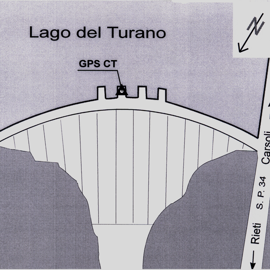 | materializzazione | Centrino GPS del tipo da livellazione infisso nella pavimentazione alla sommità del terzo contrafforte della diga, a partire dalla S.P.34. |