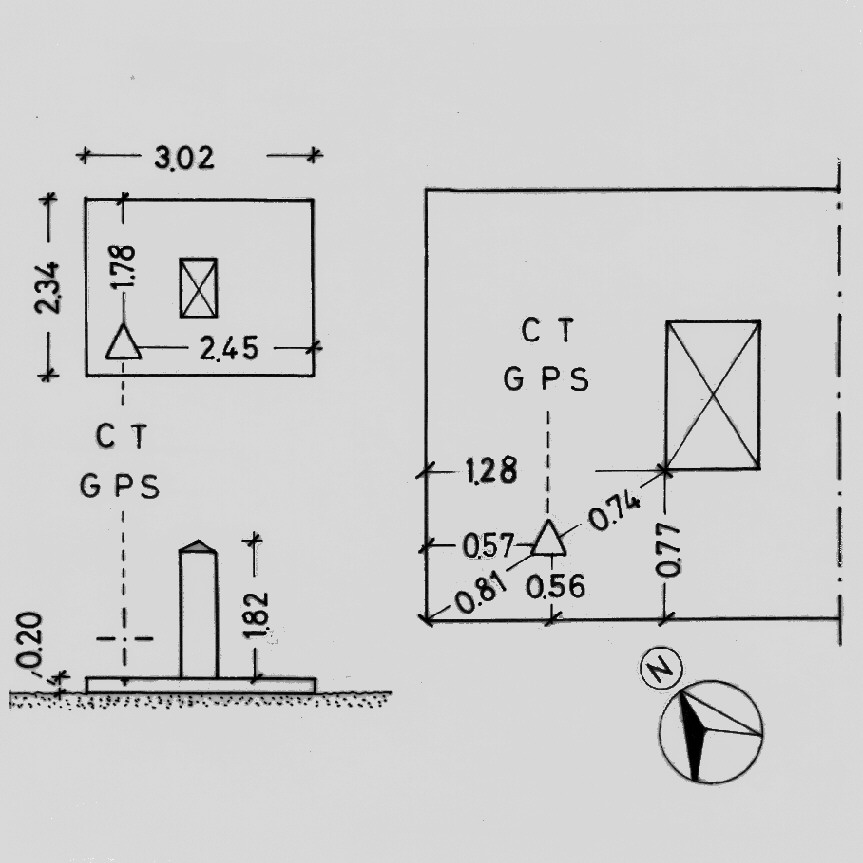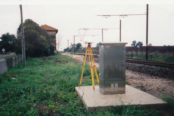 | materializzazione | Centrino di tipo "GPS C" fissato in prossimità dello spigolo sud-ovest del basamento, in cemento armato, della centralina della stazione. |