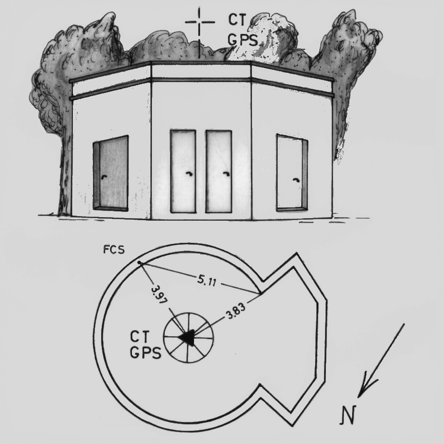 | materializzazione | Centrino di tipo "GPS A" fissato sul centro della grata metallica che copre la sommità della volta dello spartitore dell'acquedotto, sito nella parte più alta del paese. |