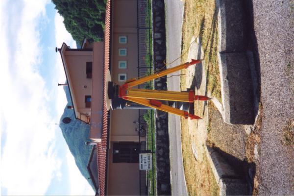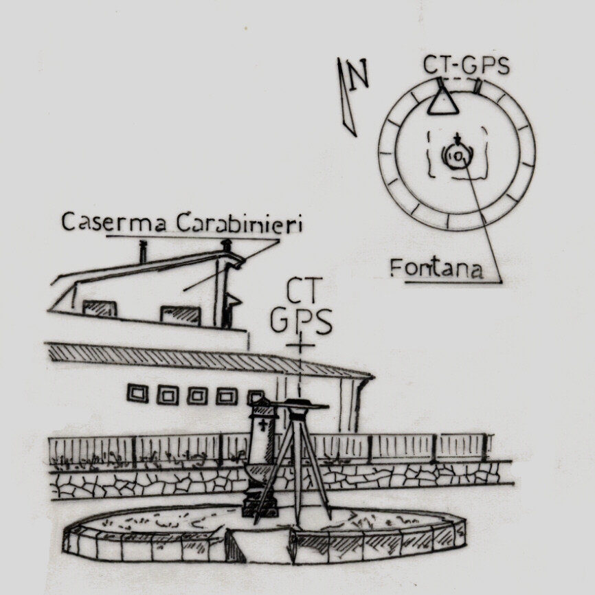 Centrino in acciaio inox del tipo "GPS C" infisso nella soletta in calcestruzzo che costituisce il basamento della fontana posta nell'area di parcheggio per camper, all'esterno del centro storico, e adiacente alla locale stazione dei Carabinieri.