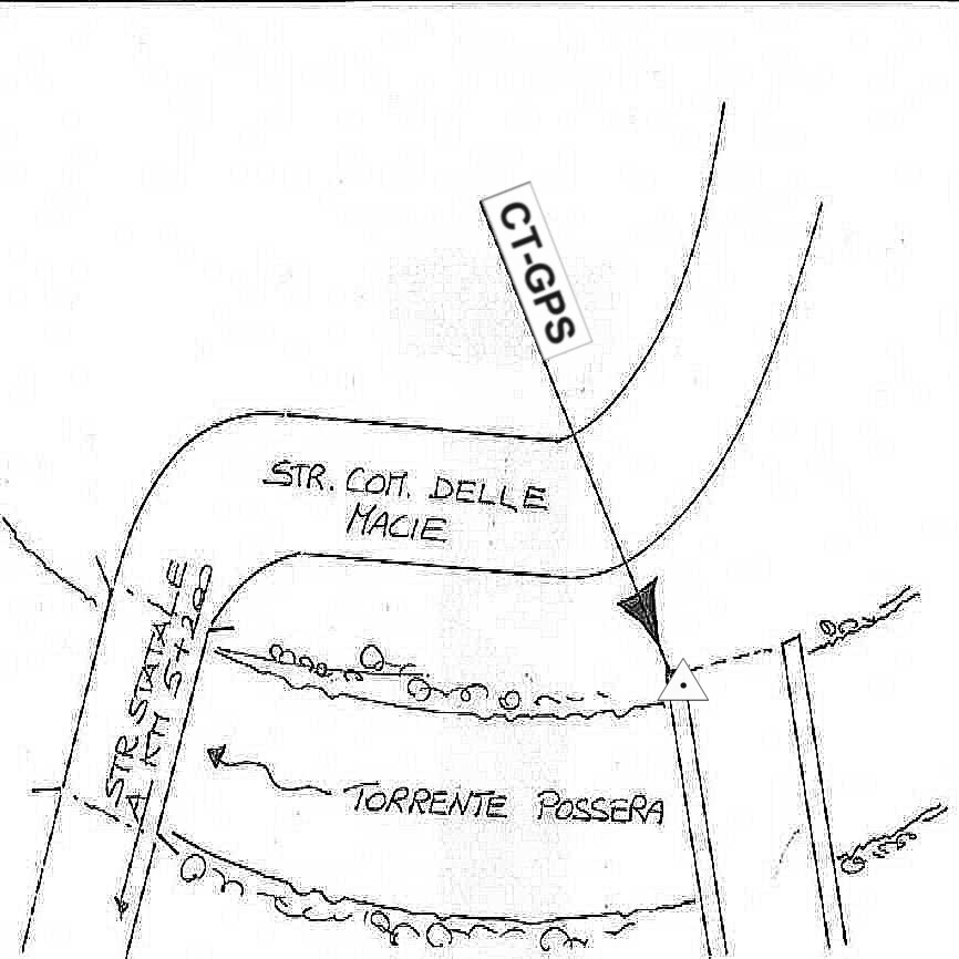 | materializzazione | Centrino in acciaio inox murato all'inizio del muro del ponticello in calcestruzzo ( attraversamento tubo ) posto sulla strada comunale delle Macie al Km 5 + 200 dalla strada S.R. Pomarance – Saline a Km 2 + 800 dall' incrocio con la strada comunale del Palagetto. |