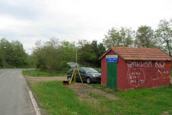 Centrino in acciaio inox murato sulla platea in cemento del casotto ANAS sulla strada S.S. 73 al Km 119 + 035 nel comune di Monte San Savino.