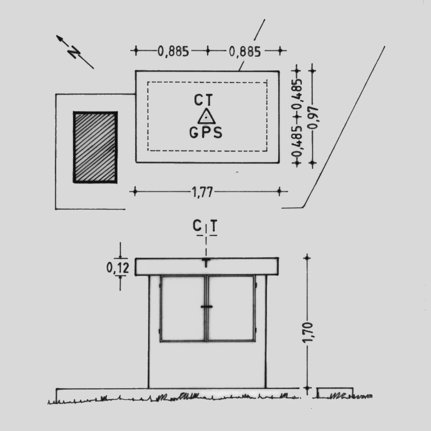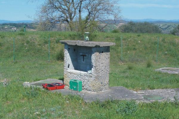 | materializzazione | Centrino di tipo "GPS C" fissato alla sommità della cabina d'ispezione dell'Acquedotto del Fiora, in corrispondenza dell'asse geometrico della soletta di copertura in calcestruzzo, posta sul colle prospiciente a nord – est dell'abitato di Pescia Fiorentina. |