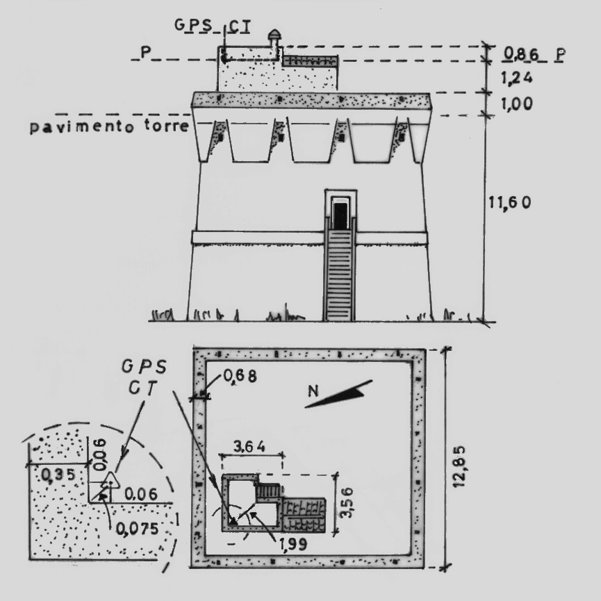 | materializzazione | Centrino di fondo cementato sul pavimento di copertura in corrispondenza dello spigolo interno nord della torretta sovrastante la Torre Buranaccio ubicata tra il Lago di Burano ed il mare. |
