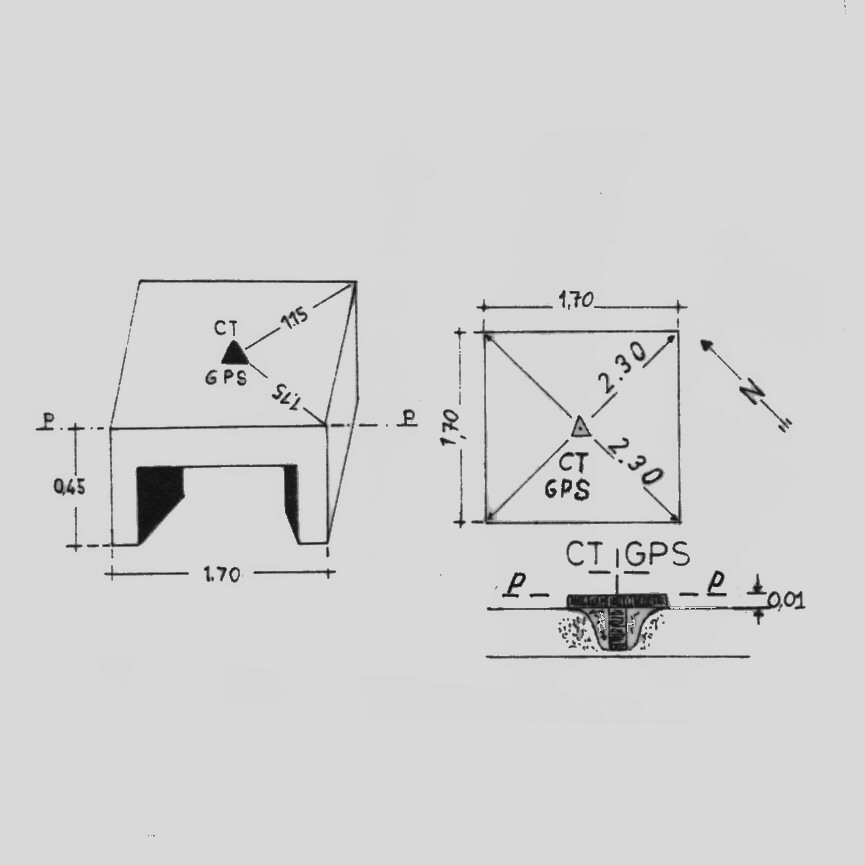 | materializzazione | Centrino del tipo "GPS C" fissato sulla soletta di copertura in cemento armato di un tombino stradale, coincidente con l'asse geometrico dello stesso, sito sulla strada che da Rotella conduce a Contrada Osteria. |