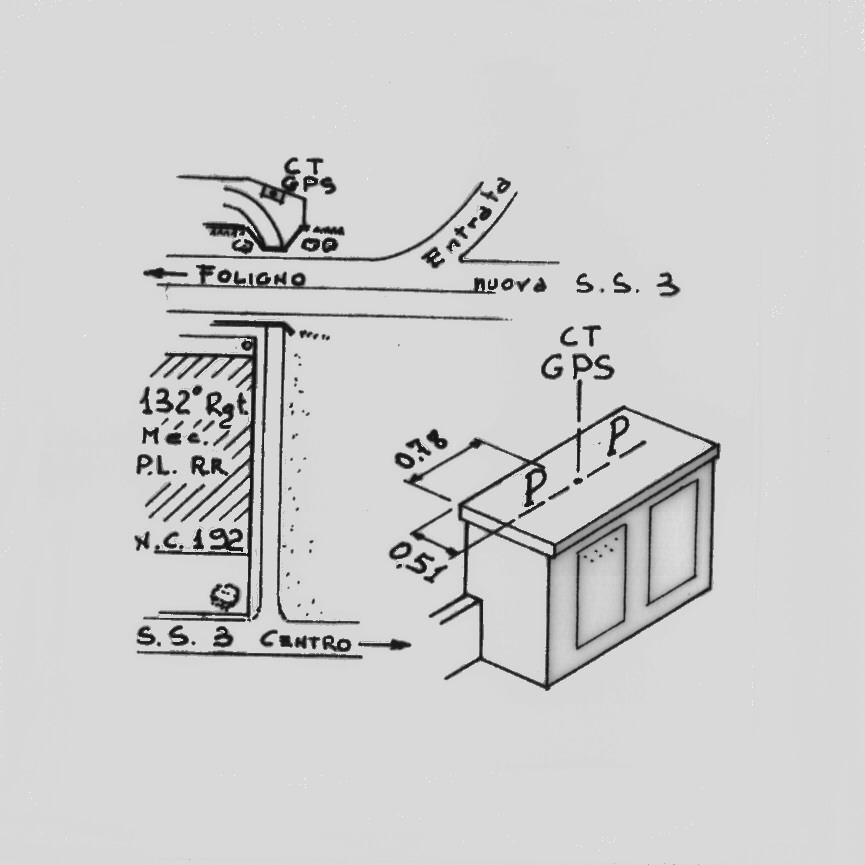 | materializzazione | Centrino del tipo "GPS C" fissato sulla soletta di copertura di una cabina in cemento armato di allacciamento alla rete ENEL. |