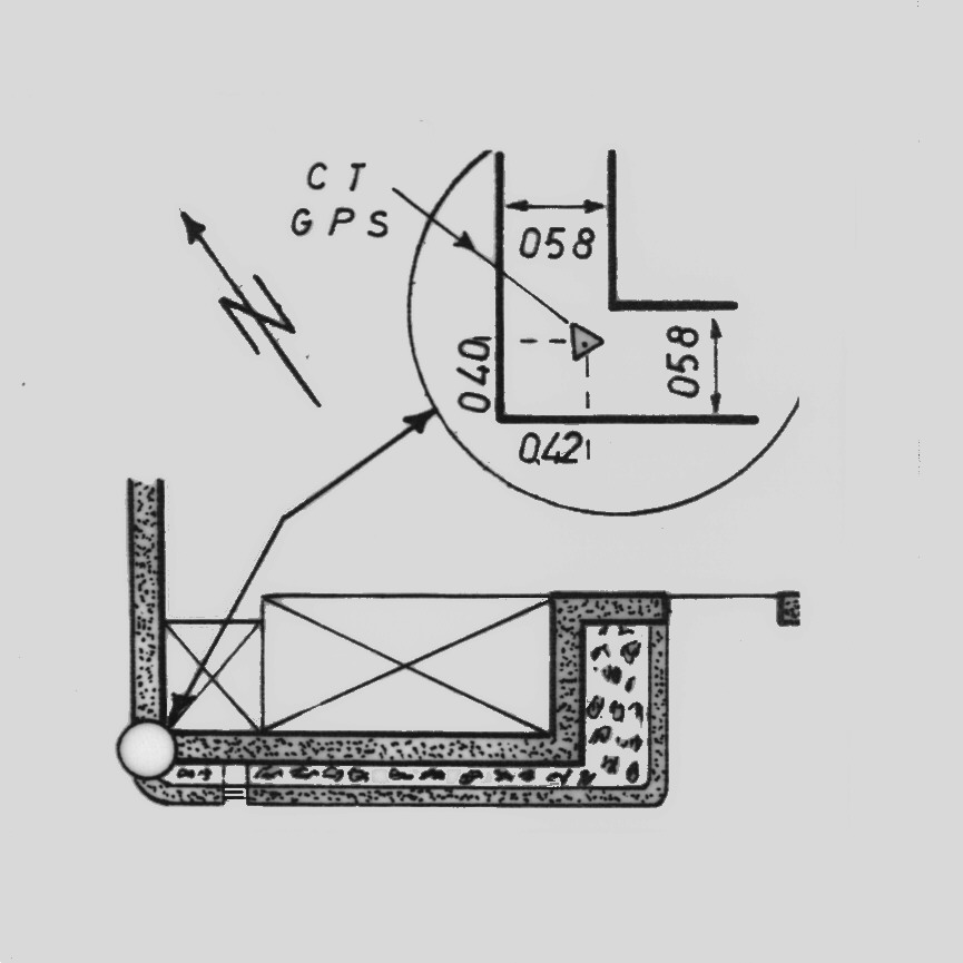 | materializzazione | Centrino del tipo "GPS C" fissato alla sommità del muro di cinta in muratura del cimitero, nei pressi di un fienile posto alla sommità di un piccolo terrapieno. |