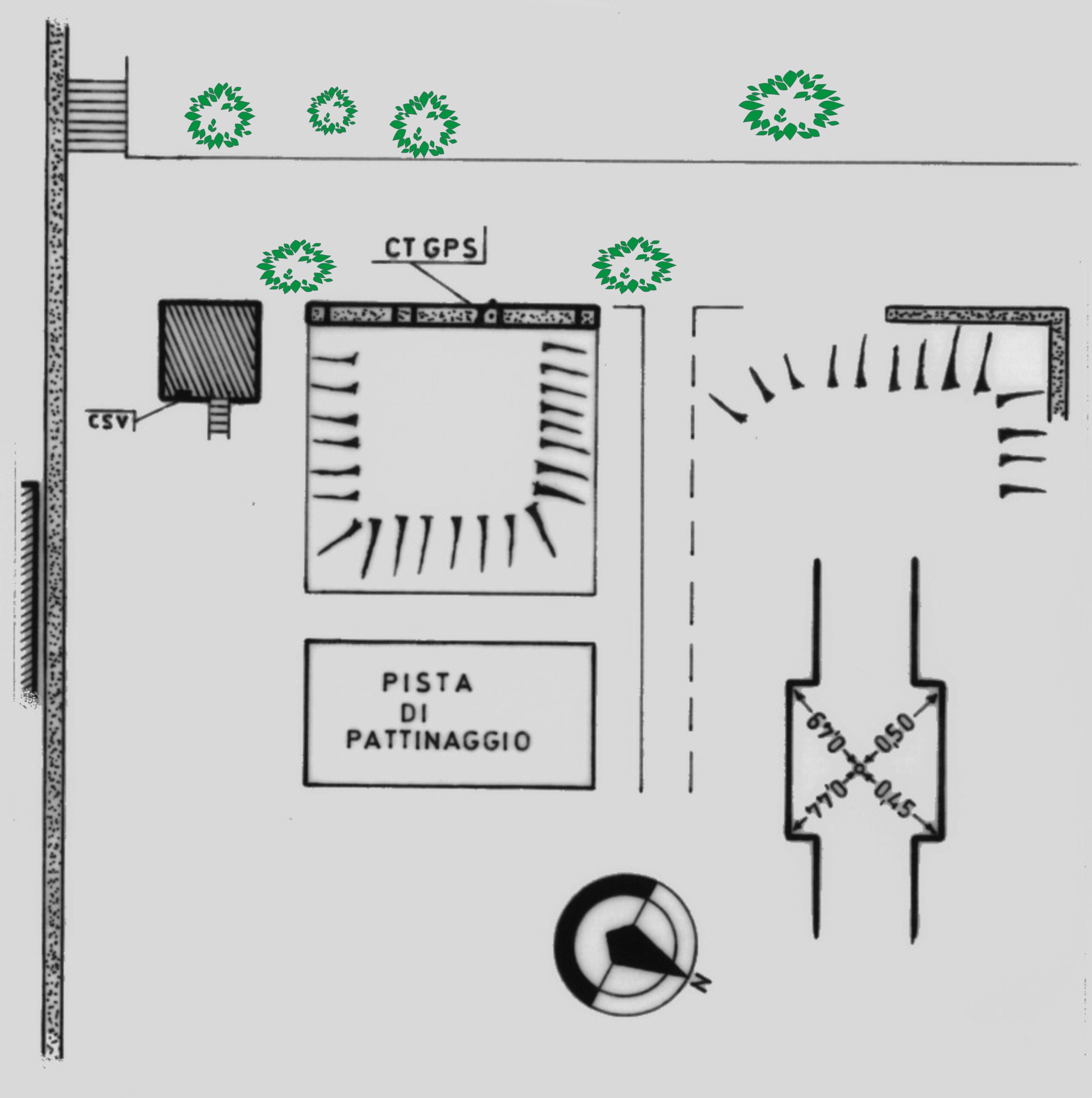 | materializzazione | Centrino del tipo "GPS C" infisso alla sommità del frontone d'ingresso al serbatoio idrico esistente a nord della torre dell'orologio. |