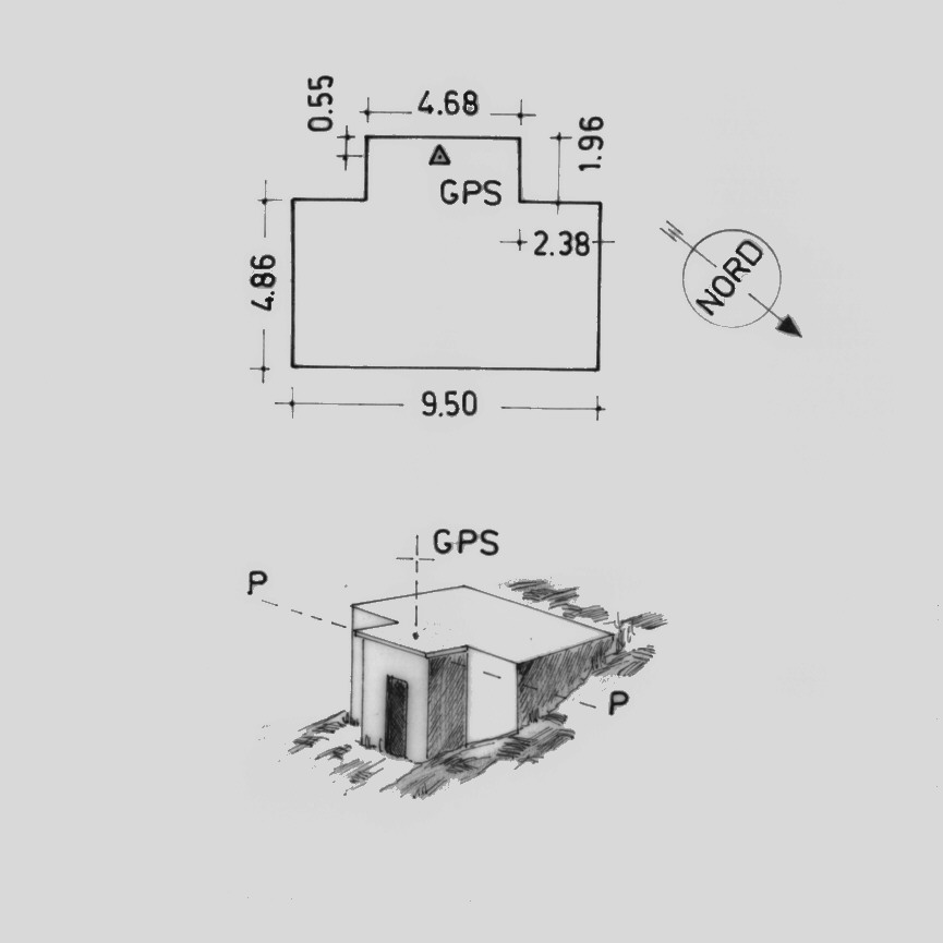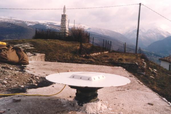 | materializzazione | Centrino del tipo "GPS C" fissato sulla soletta in cemento armato a copertura del casotto adibito a serbatoio dell'acquedotto, posto alla sommità del colle sovrastante l'abitato di Fiegni. |