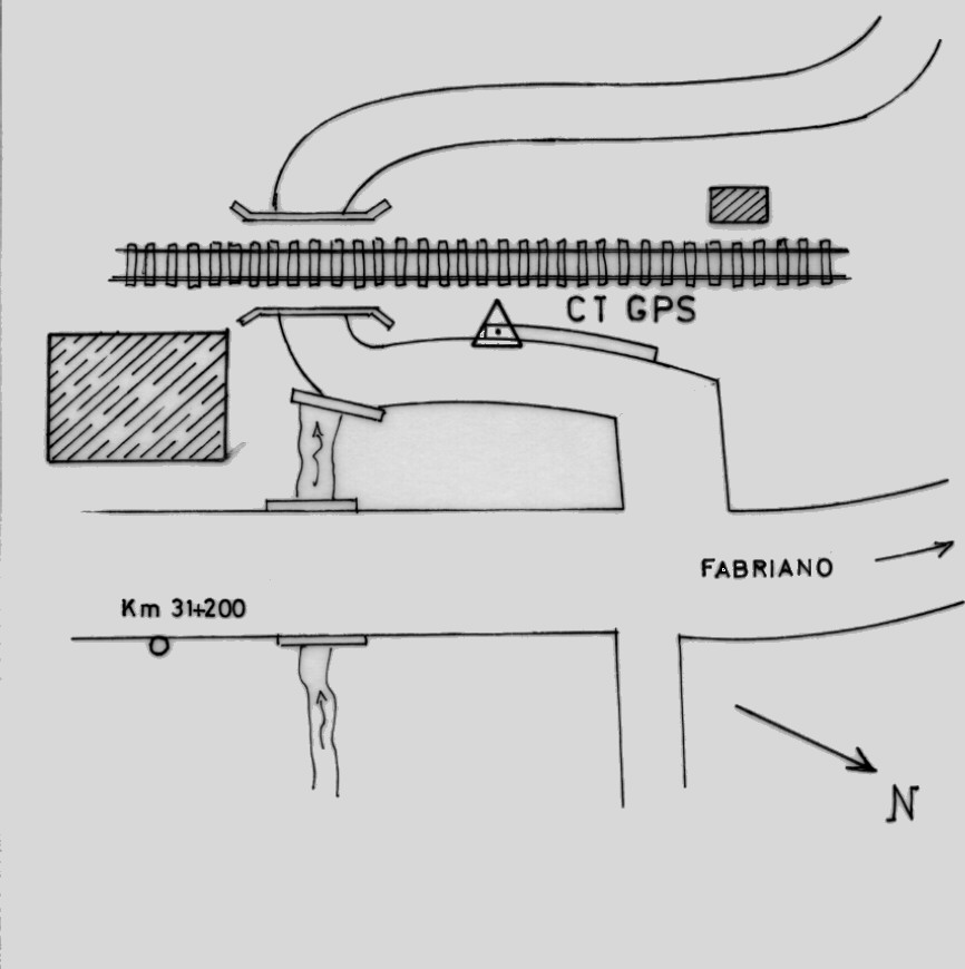| materializzazione | Centrino in acciaio inox del tipo "GPS C" infisso nel muro in cemento armato di contenimento della strada che passa sotto la ferrovia, in prossimità del km 31,200 della S.S. 256. |