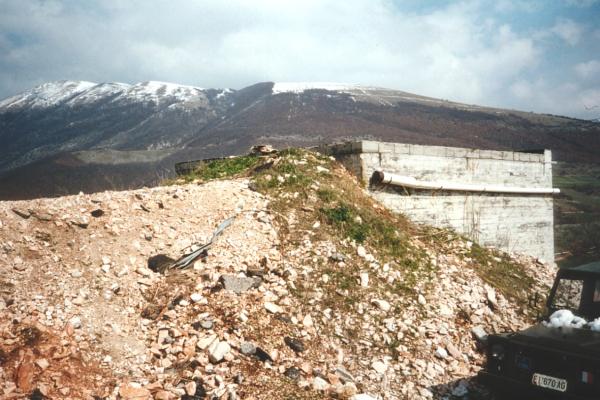 | materializzazione | Centrino del tipo GPS C" fissato al centro della sommità della parete posteriore del serbatoio più grande dei due esistenti, in corrispondenza di una piccola rampa, fatta con materiali di riporto, che conduce direttamente alla sommità del serbatoio stesso. |