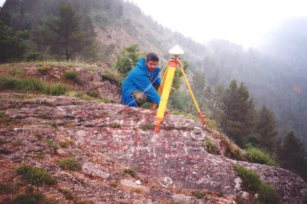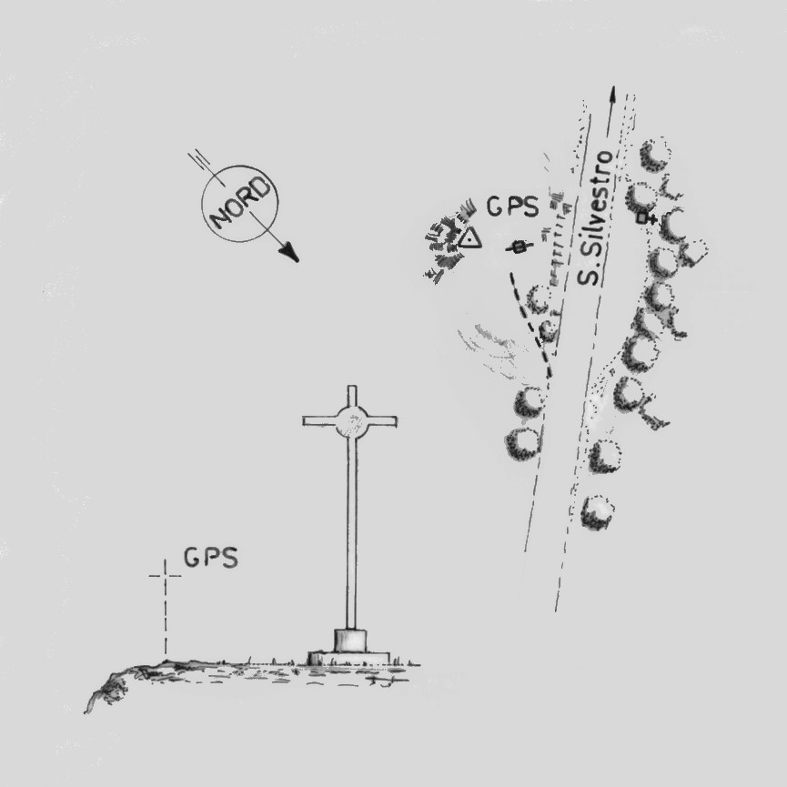 | materializzazione | Centrino del tipo "GPS C" fissato su di uno sperone roccioso posto a m 4,26 in direzione sud dalla croce in cemento eretta su di un piccolo rilievo a lato della strada. |