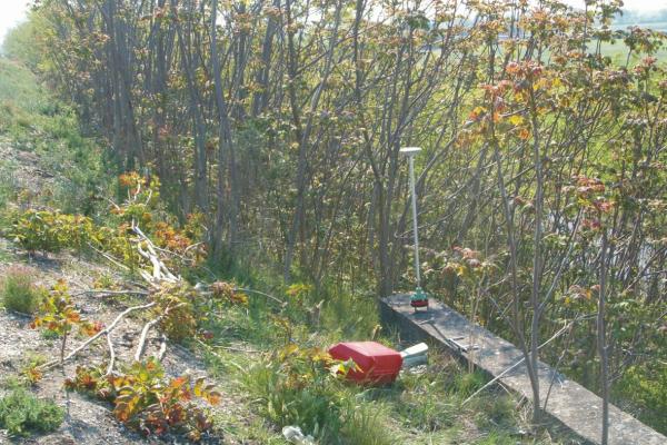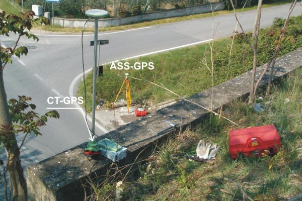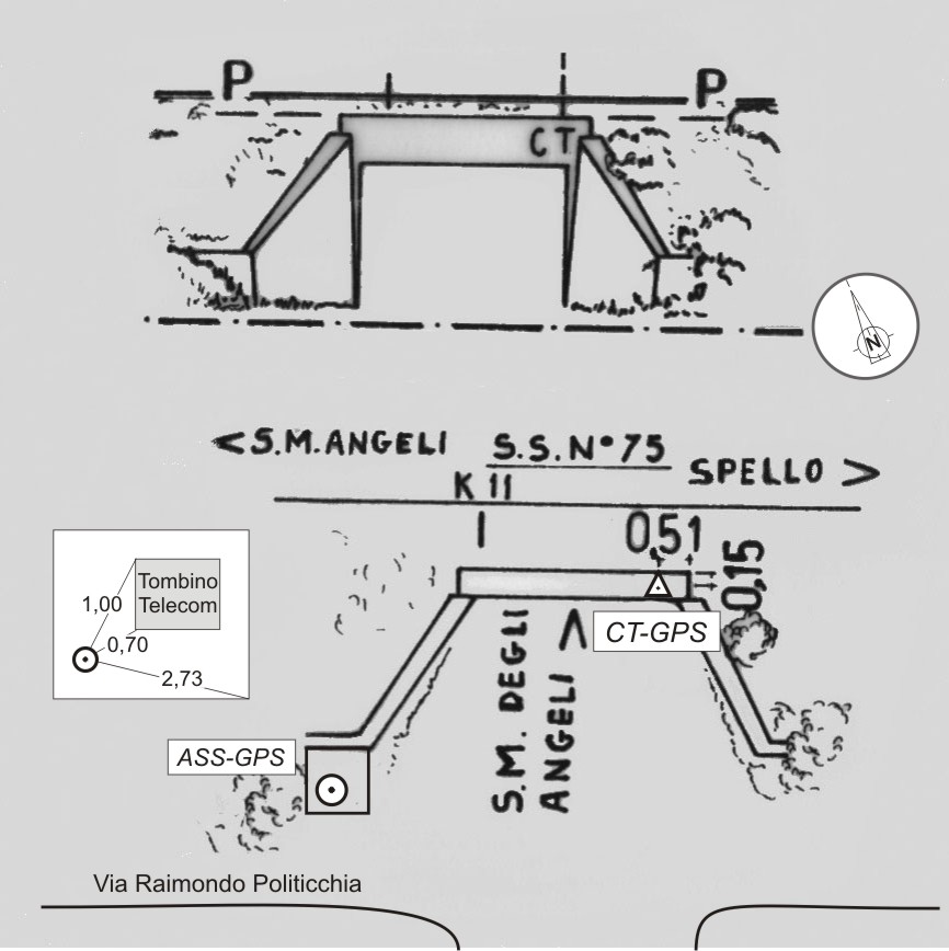 Centrino del tipo "GPS C" fissato alla sommità del cordolo in cemento armato del cavalcavia (estremo sud-est).