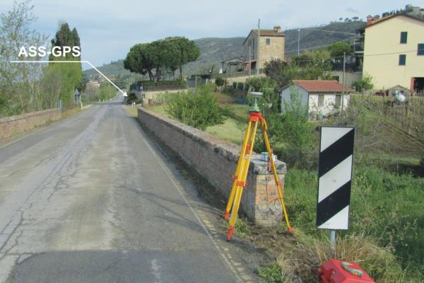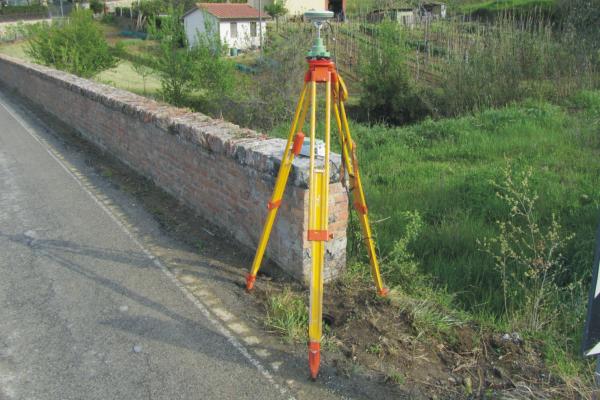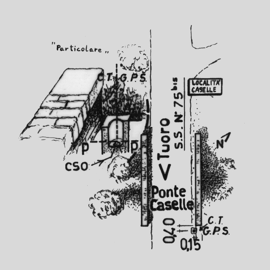 Punto di tangenza del piano orizzontale alla sommità del contrassegno di porcellana del cs 12/80 (Q 1992) posto presso lo spigolo sud-est della spalletta del ponte Caselle.