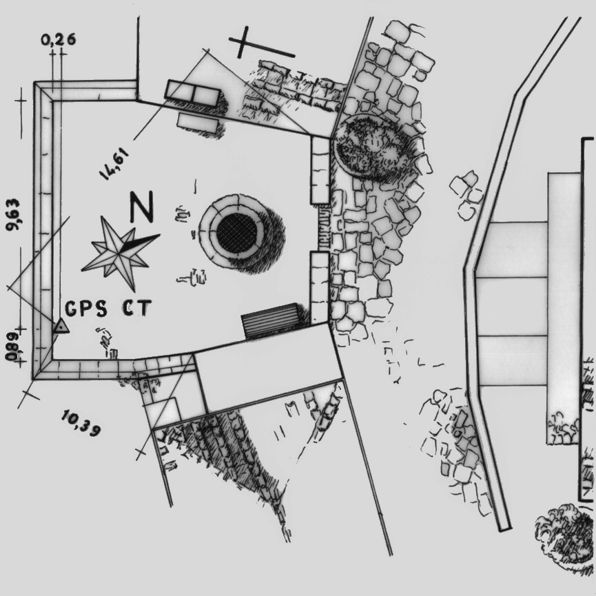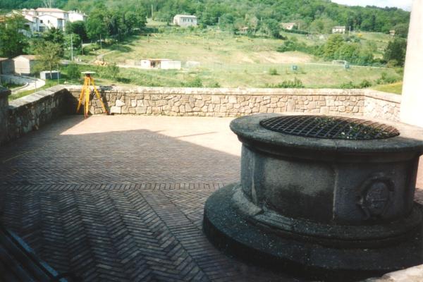 Centrino del tipo "GPS C" infisso, presso l'angolo sud-est, nel pavimento in mattoni della terrazza a copertura della cisterna del sec. VIII, ubicata nel centro storico di Torniella, in prossimità della chiesa parrocchiale.