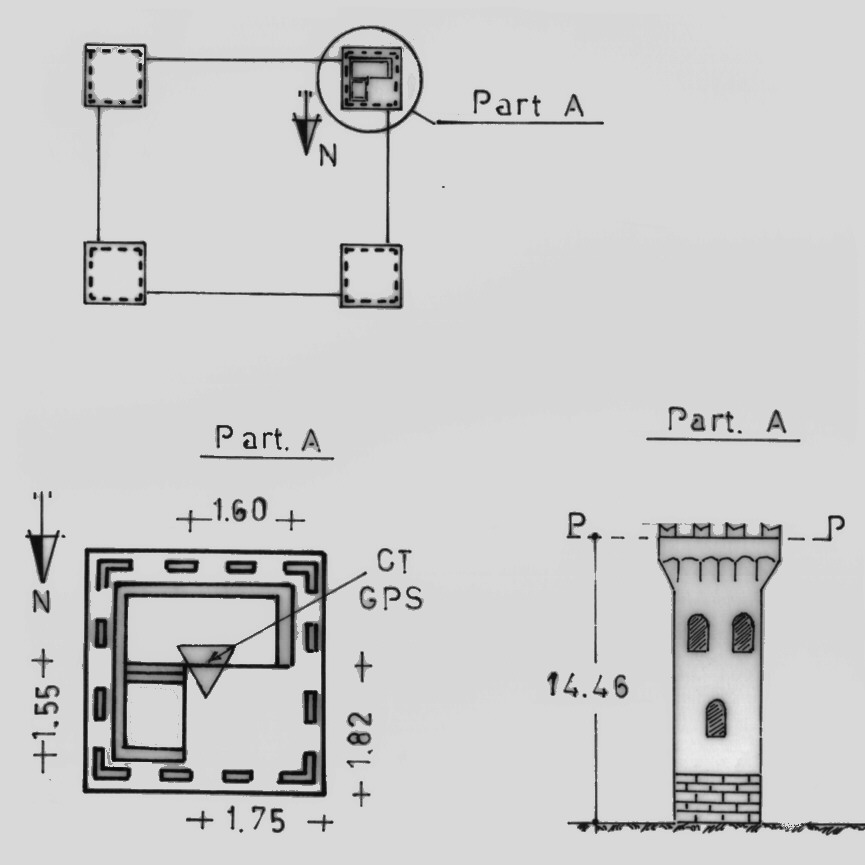 | materializzazione | Centrino del tipo "GPS C" infisso in prossimità dello spigolo sud – est della soletta di copertura del casotto d'accesso alla sommità della torre sud-ovest del castello, in coincidenza con l'asse geometrico della stessa. |