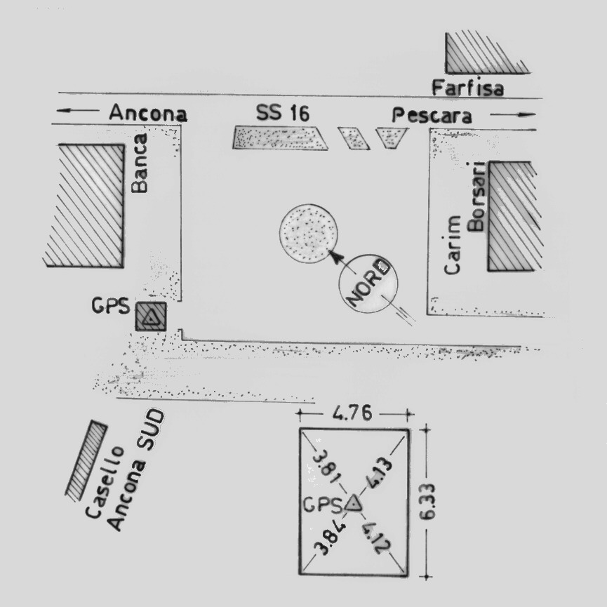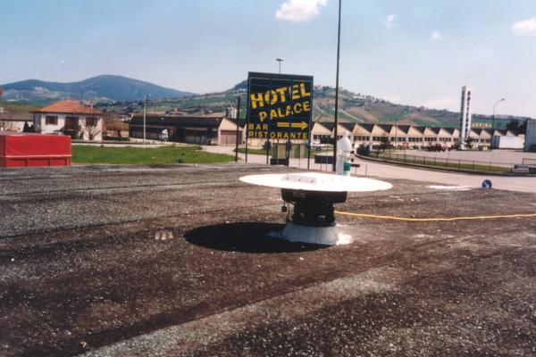 Centrino in acciaio inox del tipo "GPS C" fissato in prossimità del centro geometrico della soletta di copertura della cabina ENEL.