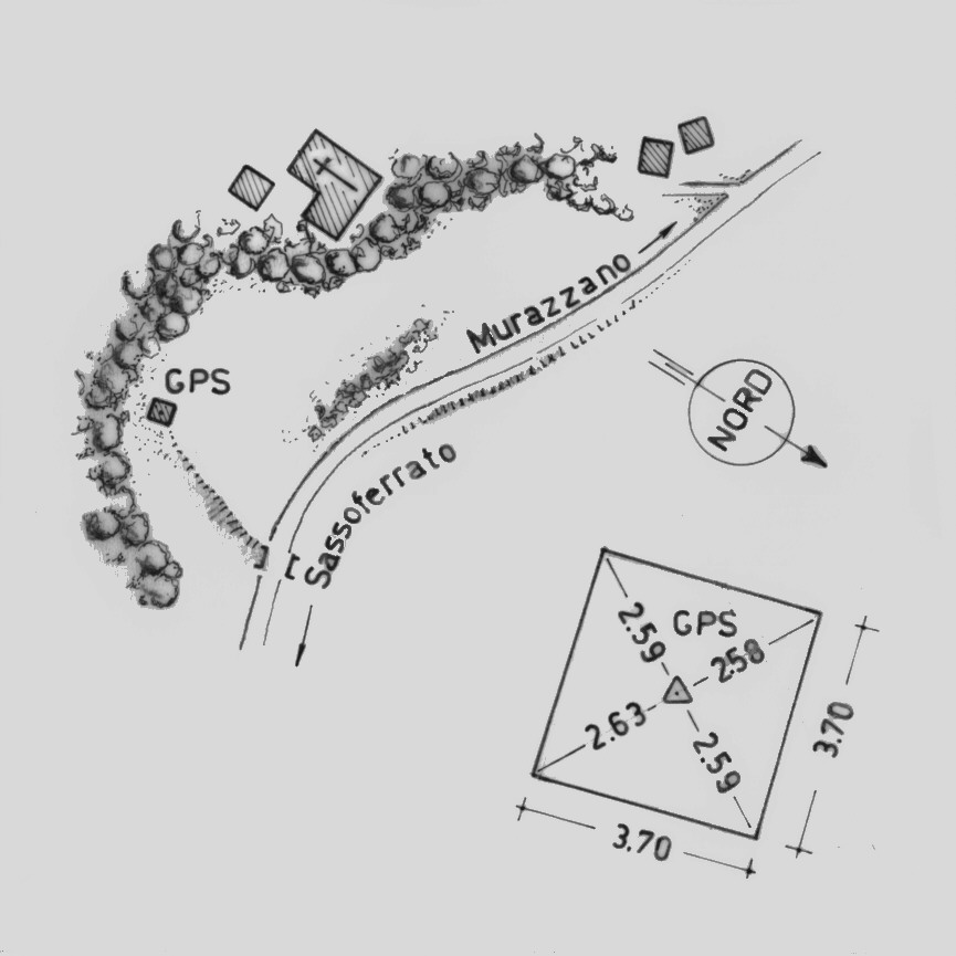 | Materializzazione | Centrino del tipo "GPS C" fissato in corrispondenza del centro geometrico della soletta di copertura del serbatoio dell'acquedotto. |