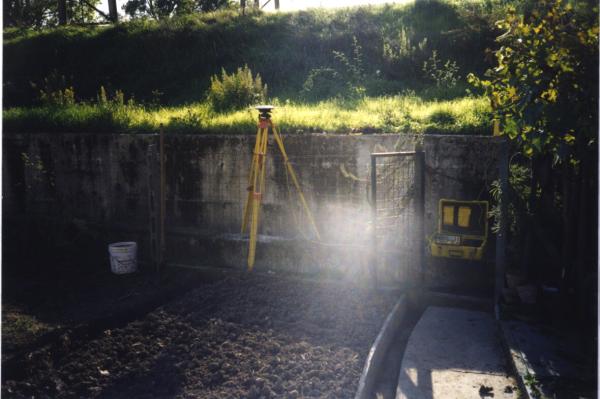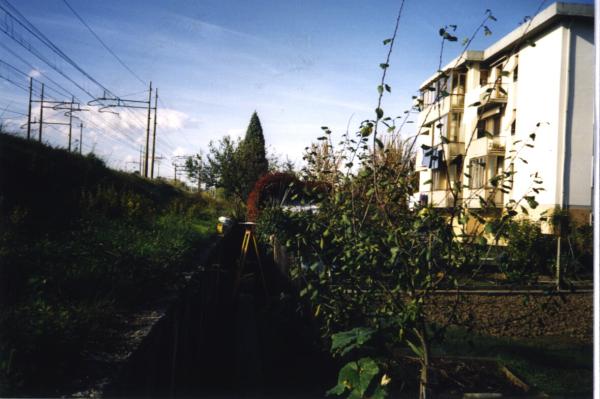 Centrino del tipo "GPS C" infisso alla sommità del muretto di contenimento in calcestruzzo armato della scarpata della linea ferroviaria Firenze-Roma.
