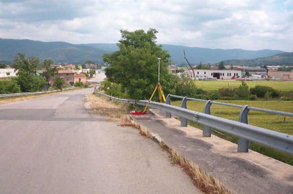 | materializzazione | Centrino in acciaio inox murato sul cordolo di un cavalcavia ferroviario in località " Vallone " comune di Cortona, zona industriale. |