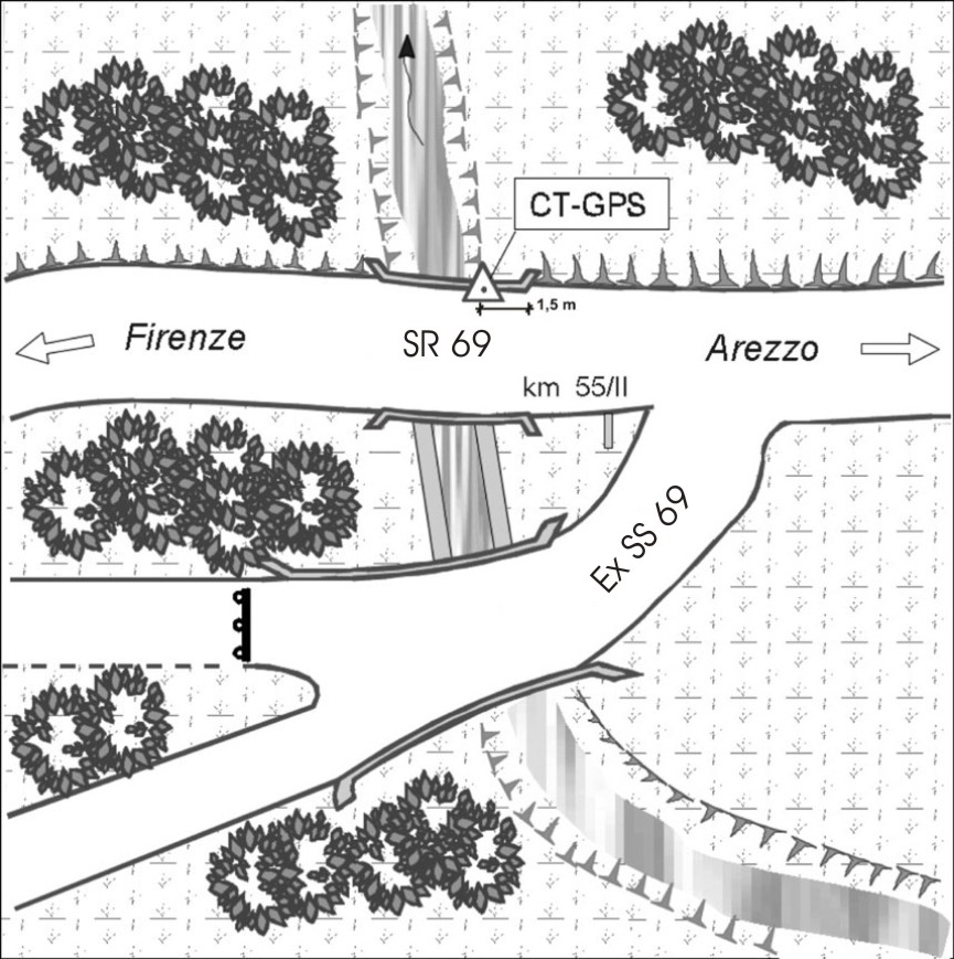 | Materializzazione | Centrino del tipo "GPS C" infisso nel cordolo in cemento di un ponticello. |