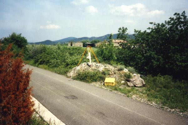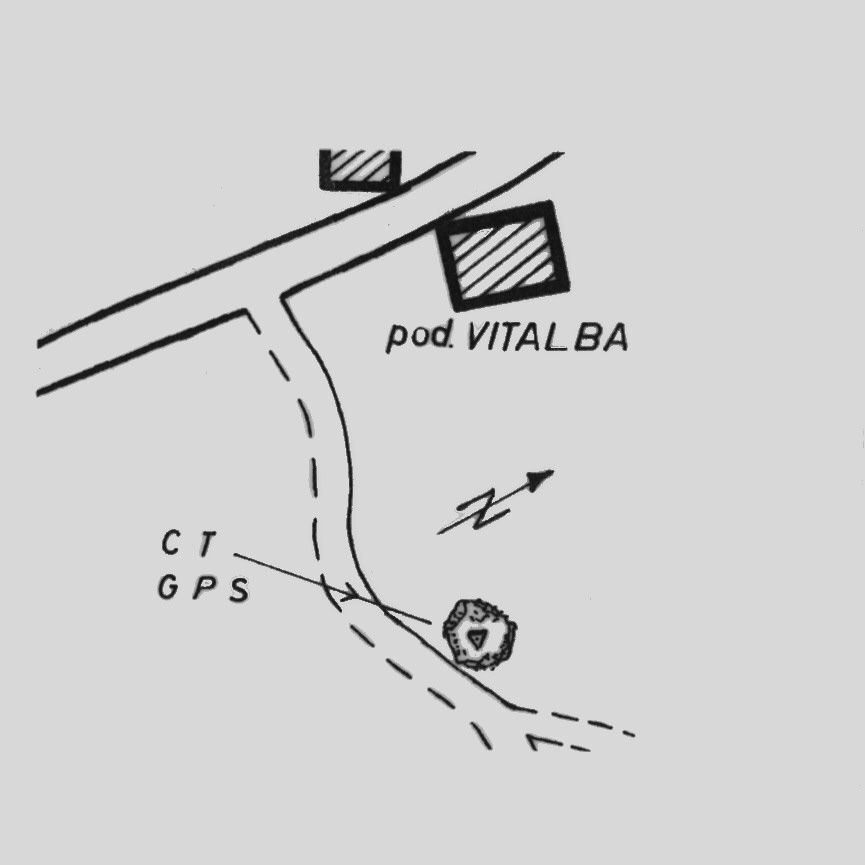 Centrino del tipo "GPS C" fissato su un blocco roccioso sito lateralmente alla strada sterrata che dal Podere Vitalba conduce a Monte Vitalba.