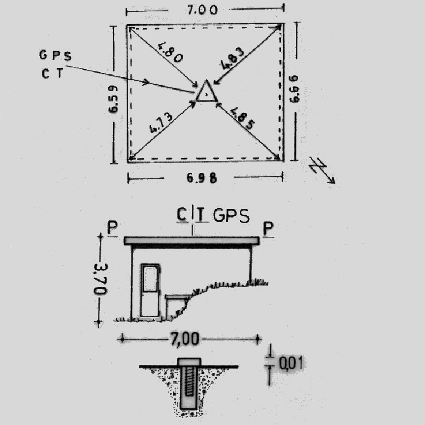 | Materializzazione | Centrino del tipo "GPS C" fissato al centro della soletta di copertura del deposito dell'acquedotto comunale. |