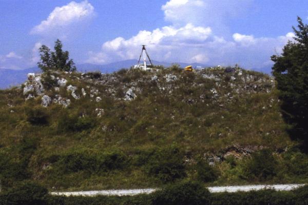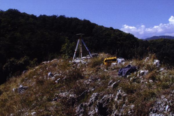 | Materializzazione | Centrino in acciaio inox uguale a quello di tipo "GPS C" ma senza scritte, con affiancata targhetta di colore blu recante le caratteristiche tecniche del punto, infisso in roccia affiorante. |