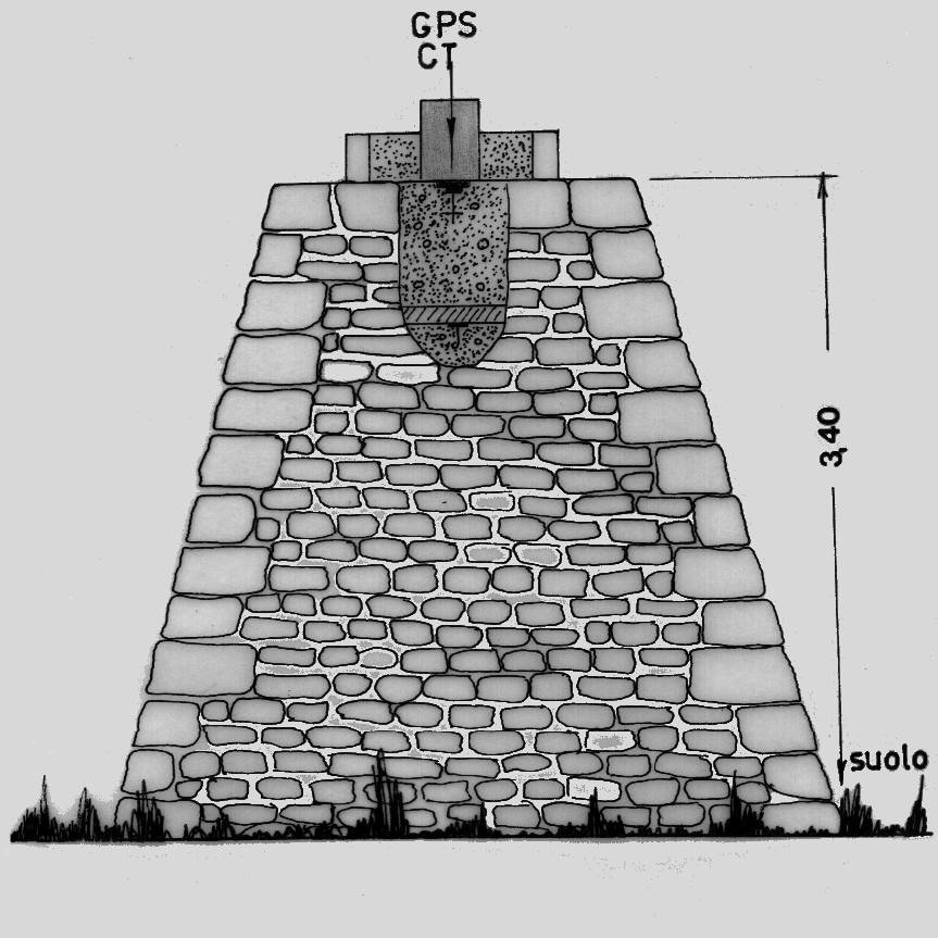 | materializzazione | Centrino di tipo "GPS A" fissato in asse al centrino di superficie posto sopra un grosso basamento tronco-piramidale in pietra. |