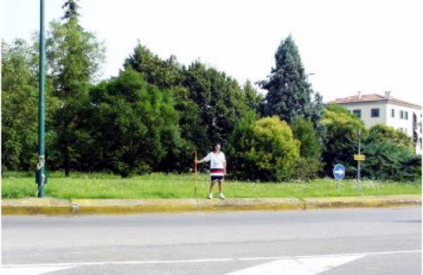 [{"simbolo_contrassegno":"B4","materializzazione":"(CSO) -Sul cordolo di cemento dell'aiuola rotonda di Piazza Parmesan, in asse con via Beccaria ."}]
