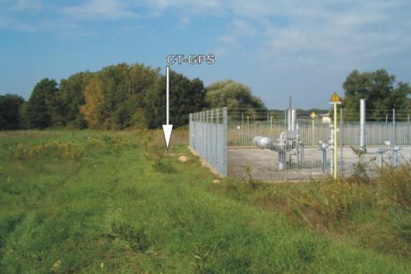 | materializzazione | Centrino universale GPS in acciaio Inox infisso sulla sommità del basamento in cemento di fronte all'ingresso secondario alla centralina. |