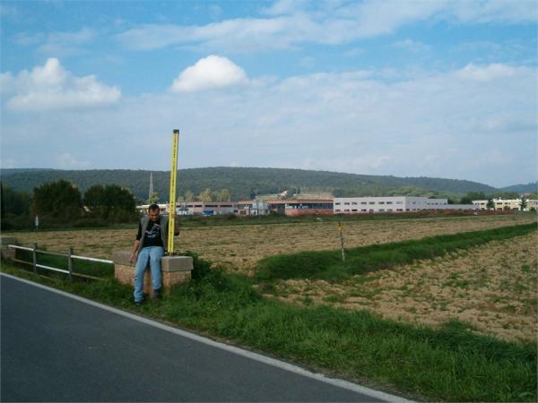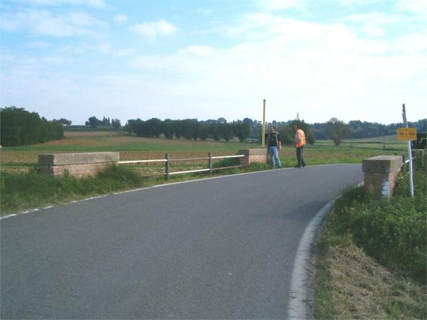 | materializzazione | Centrino universale GPS in acciaio Inox infisso sulla sommità del blocco destro del parapetto del ponte, a monte della strada, in prossimità della testata Est. |