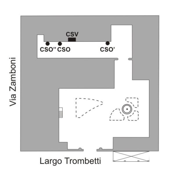 | Contrassegni | [{"simbolo_contrassegno":"P4","materializzazione":"(CSO) Pozzetto di IV Categoria cementato alla base della torre, a 2.50 m dall'asse della porta"},{"simbolo_contrassegno":"B1","materializzazione":"(CSO') – Bullone del comune di Bologna infisso sulla facciata della torre a destra della porta, a 1 m dallo spigolo della torre."},{"simbolo_contrassegno":"B1","materializzazione":"(CSO\") Bullone del comune di Bologna infisso a sinistra della porta nei pressi del pozzetto. Il contrassegno NON E' MISURABILE a causa dell'istallazione di impianti di condizionamento che lo sovrasta."},{"simbolo_contrassegno":"V3","materializzazione":"(CSV) Piastrina antica infissa a sinistra della porta suddetta"}] |