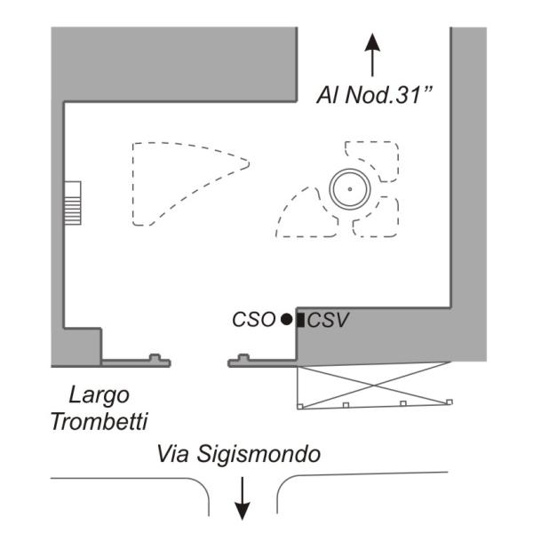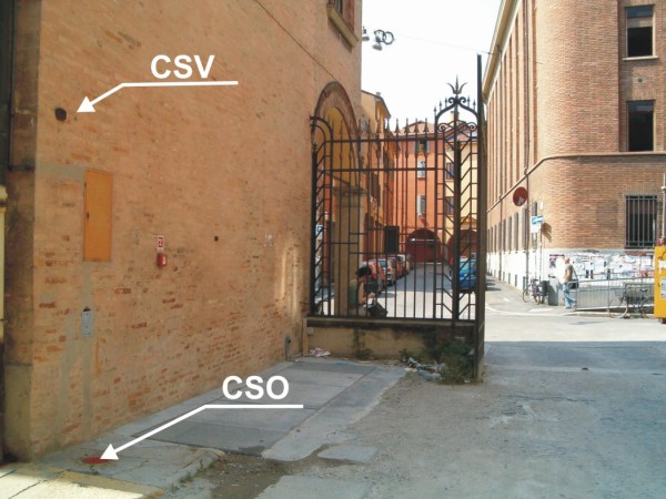 | Contrassegni | [{"simbolo_contrassegno":"P1","materializzazione":"(CSO) Chiusino in ghisa di I\u00b0 Categoria, cementato alla base della parete interna, a destra del grande cancello, presso lo spigolo sinistro della stessa"},{"simbolo_contrassegno":"V2","materializzazione":"(CSV) – Piastrina a barilotto infissa sulla parete anzidetta, in corrispondenza del CSO."}] |