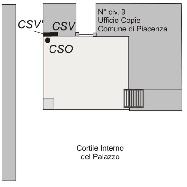 [{"simbolo_contrassegno":"B5","materializzazione":"(CSO) – Disco impiombato sul lastrico del portico interno del Palazzo \"Il Gotico\", a sinistra della scala d'accesso agli uffici."},{"simbolo_contrassegno":"V3","materializzazione":"(CSV) – Piastrina in ghisa IGM infissa sulla parete, sotto il portico, a sinistra della porta al N\u00b0 Civ. 9."},{"simbolo_contrassegno":"V5","materializzazione":"(CSV') – Targa in marmo riportante la scritta: \"M. 61,687 sul livello del mare\", infissa sulla stessa parete, al disotto del CSV."}]