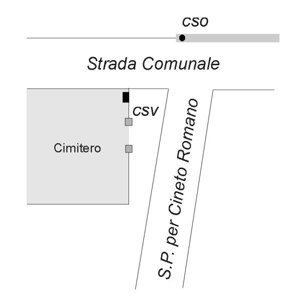 | Contrassegni | [{"simbolo_contrassegno":"B4","materializzazione":"(CSO) Bulloncino inox di tipo ABT fissato sul marciapiede della strada comunale a destra del piazzale antistante il cimitero."},{"simbolo_contrassegno":"V5","materializzazione":"(CSV) Targhetta metallica di tipo ABT infissa sulla facciata del cimitero spigolo destro."}] |