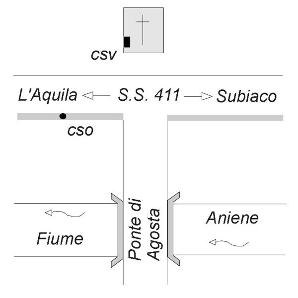 [{"simbolo_contrassegno":"B4","materializzazione":"(CSO) Bulloncino inox di tipo ABT fissato sul muro in calcestruzzo del gard rails della S.S. 411 Sublacense nei pressi del Ponte di Agosta."},{"simbolo_contrassegno":"V5","materializzazione":"(CSV) Piastrina metallica di tipo ABT infissa sulla parete ovest vicino allo spigolo destro della Chiesa posta lungo la S.S. 411 Sublacense nei pressi del Ponte di Agosta."}]