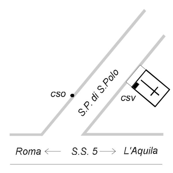 | Contrassegni | [{"simbolo_contrassegno":"B4","materializzazione":"(CSO) Bulloncino inox di tipo ABT fissato sul muretto di sostegno in calcestruzzo della S.P. di San Polo nei pressi dell'innesto con la S.S. 5 Tiburtina."},{"simbolo_contrassegno":"V5","materializzazione":"(CSV) Piastrina metallica di tipo ABT infissa sulla fascia verticale rivestita in travertino di destra della facciata frontale della Chiesa di S. Cuore."}] |