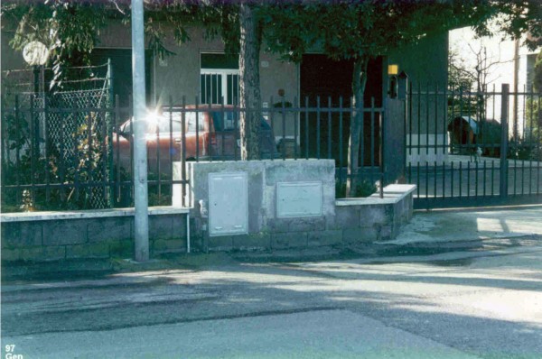 | Contrassegni | [{"simbolo_contrassegno":"B4","materializzazione":"(CSO) Bulloncino inox di tipo ABT fissato su basamento cabina metano in calcestruzzo, adiacente alla E 45 e di fronte al civico 45\/q."},{"simbolo_contrassegno":"V5","materializzazione":"(CSV) Piastrina metallica di tipo ABT infissa su nicchia contatori metano e acqua, del civico n.45\/q, posto in Via Ponte Valle Ceppi – S.Egidio. Casa \"Ambrogi\"."}] |