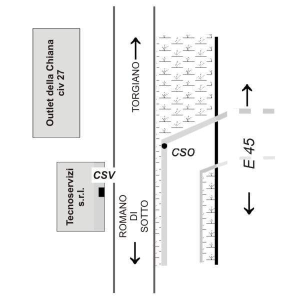 | Contrassegni | [{"simbolo_contrassegno":"B4","materializzazione":"(CSO) Bulloncino inox di tipo ABT fissato su muro di contenimento in calcestruzzo sottopassaggio E45, di fronte al civico 27 \"Carcaccia Illuminazioni\""},{"simbolo_contrassegno":"V5","materializzazione":"(CSV) Piastrina metallica di tipo ABT infissa sulla parete fronte strada adiacente alla E45, presso \"Carcaccia Illuminazioni\", al civico 27."}] |