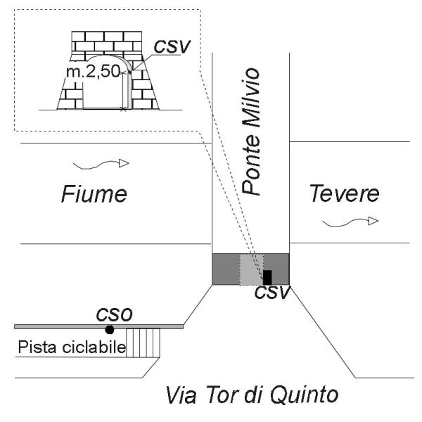 | Contrassegni | [{"simbolo_contrassegno":"B4","materializzazione":"(CSO) Bulloncino inox di tipo ABT fissato sul pilastrino in pietra posto alla base del parapetto della pista ciclabile nei pressi di Ponte Milvio."},{"simbolo_contrassegno":"V5","materializzazione":"(CSV) Piastrina metallica di tipo ABT infissa sulla spalla destra arcata superiore del Ponte Milvio."}] |