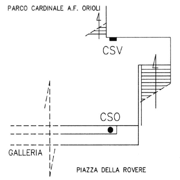 | Contrassegni | [{"simbolo_contrassegno":"B4","materializzazione":"(CSO) Bulloncino inox di tipo ABT fissato sul parapetto che si affaccia su Piazza della Rovere."},{"simbolo_contrassegno":"V5","materializzazione":"(CSV) Piastrina metallica di tipo ABT infissa sul muro di sostegno di fronte al CSO."}] |