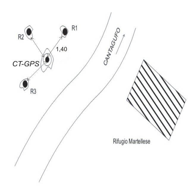 | materializzazione | Centrino metallico su roccia affiorante. |